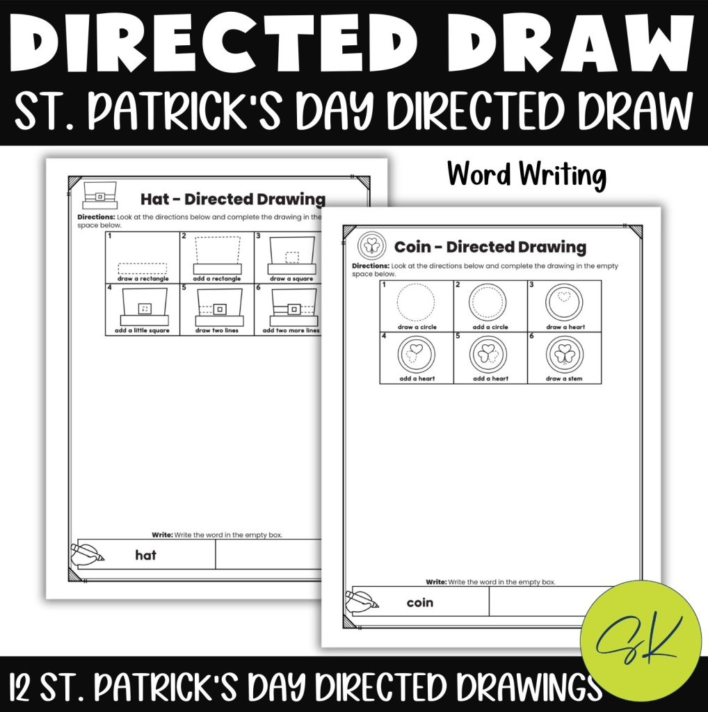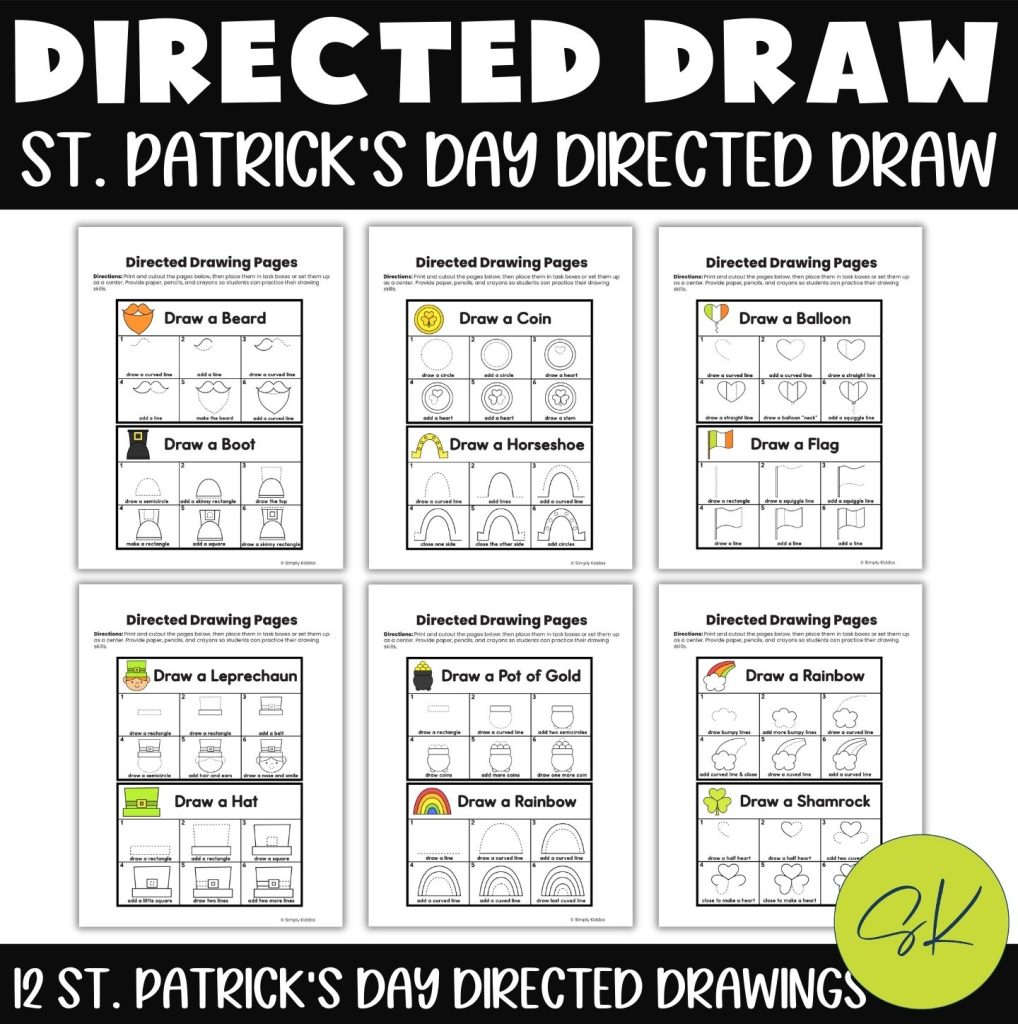 - 12 St. Patrick’s Day directed drawing pages with handwriting