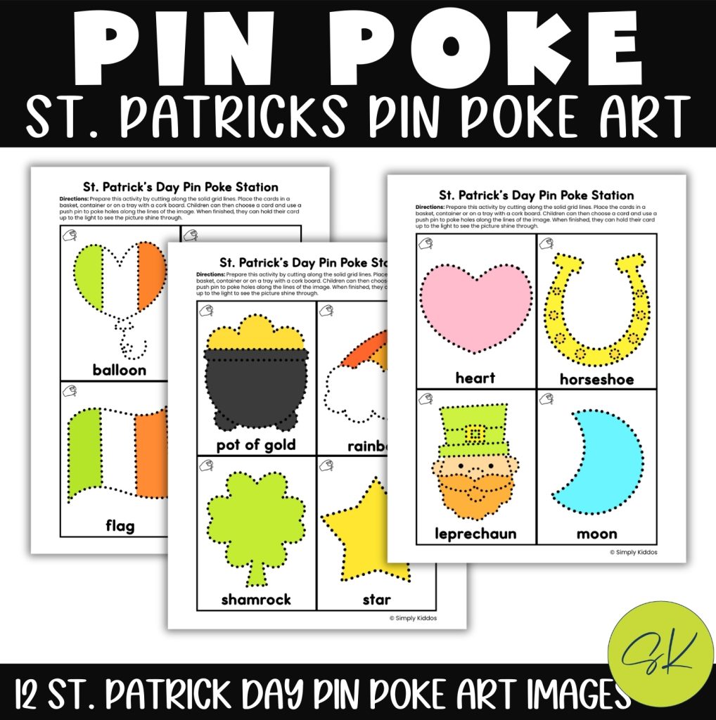 Images included in the St. Patrick’s Day Pin Poke Art Activity: