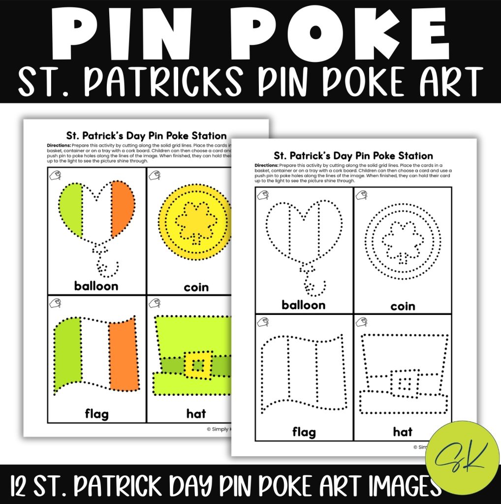 This St. Patrick’s Day push pin poke art activity is a simple, fun way for students to build fine motor skills while creating different St. Patrick’s Day pictures.